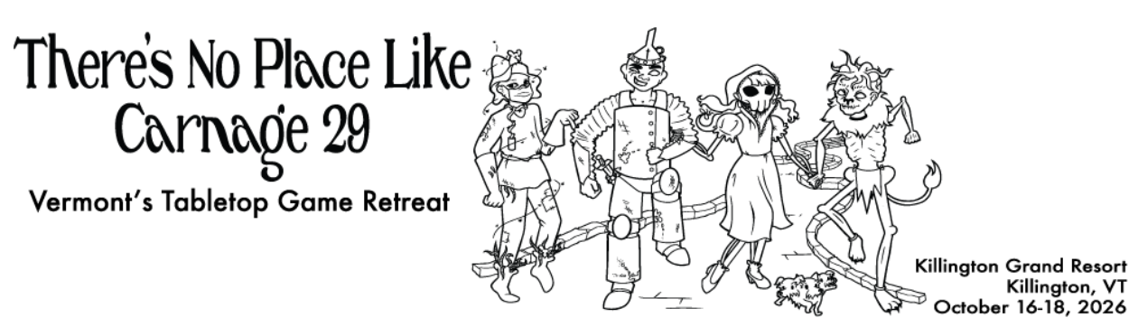 If you’re not yet sure of what you want to run this year at Carnage Royale, this list may help inspire you, or provide some direction. They are, of course, merely suggestions and fond wishes of what we’d like to see on the schedule. Ultimately, run the games you’re passionate about, because that passion helps make a good time for everyone at the table.